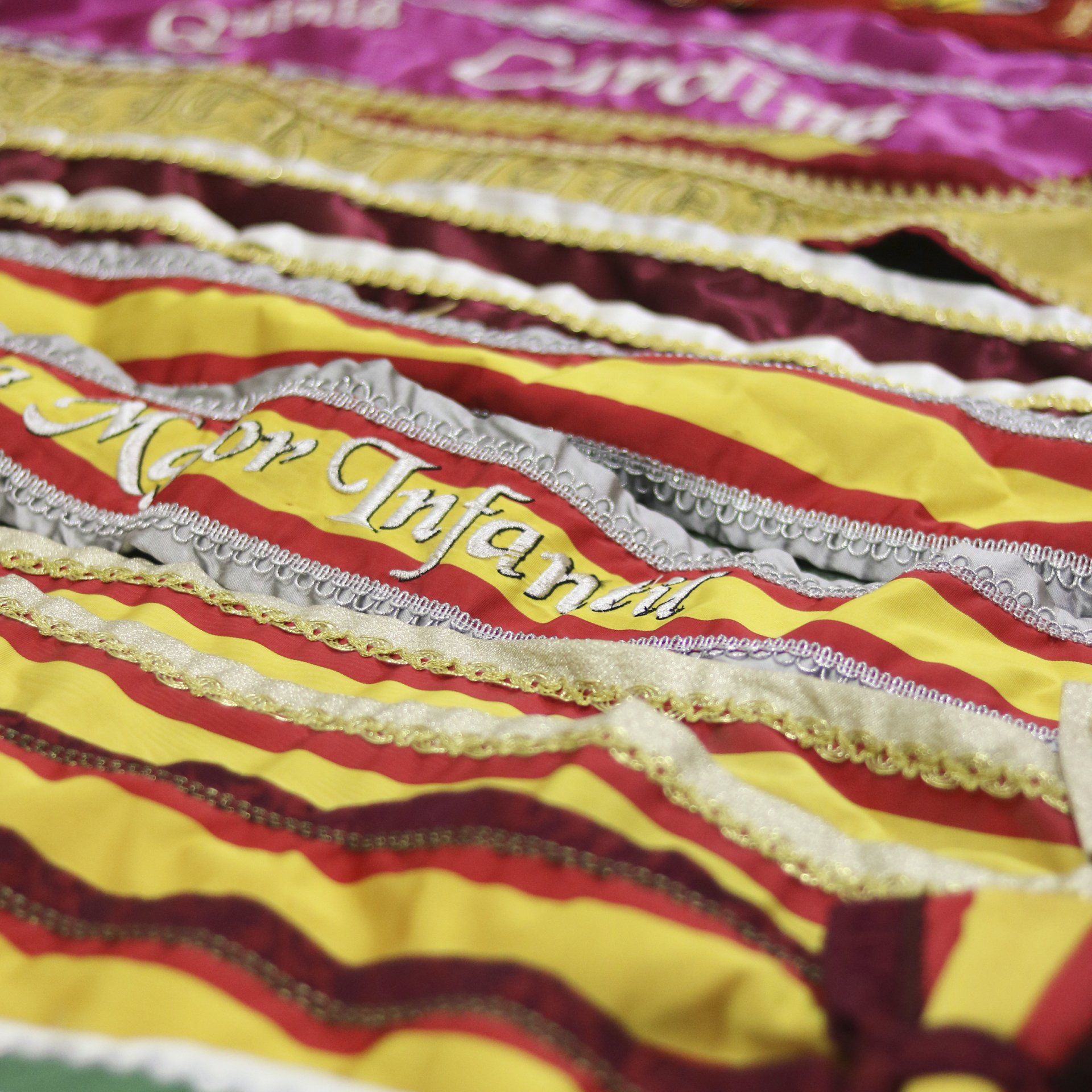 Tú elijes el material, los colores, el diseño, los complementos... y nosotros te confeccionamos la banda que te distinguirá en esas fiestas tan especiales.